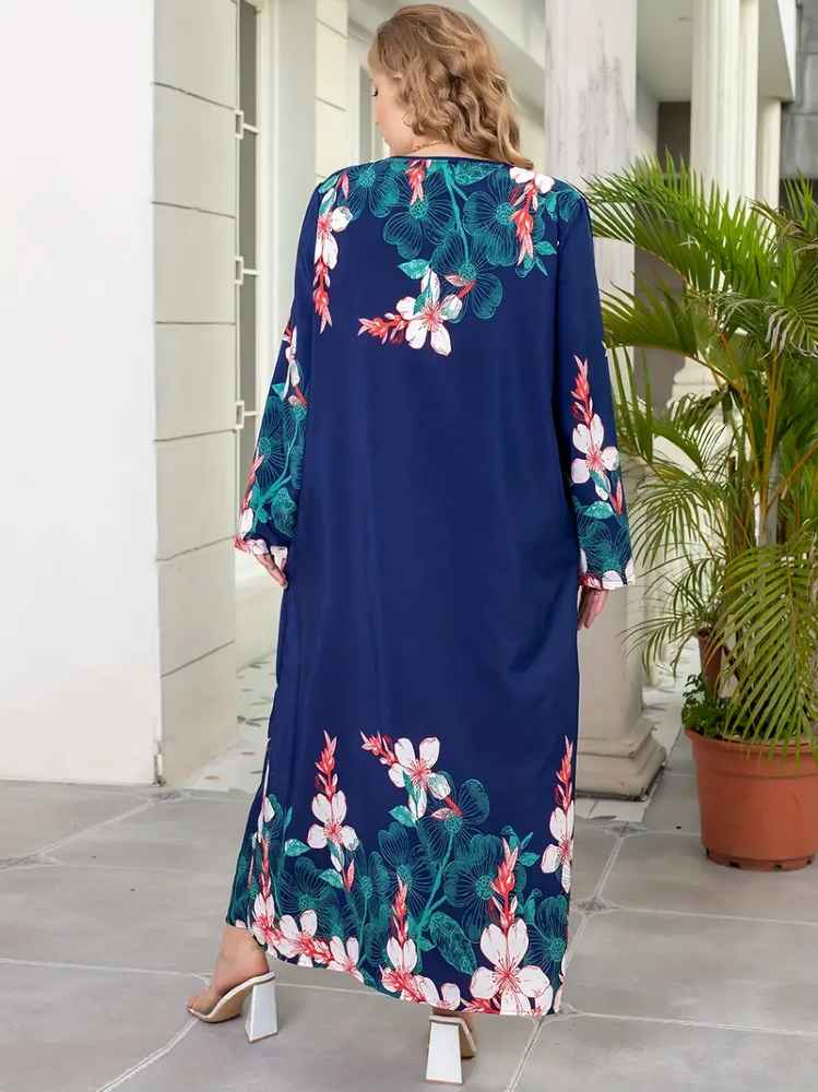 Robe décontractée grande taille, robe longue légèrement extensible à manches longues et col rond pour femmes, imprimé Floral.